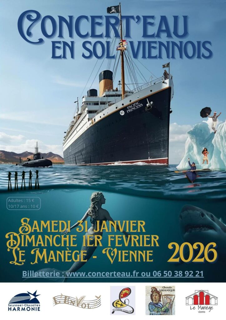Samedi 31 janvier à 20h30 + dimanche 1er février à 15h – Le Manège, Espace St Germain (30 avenue Général Leclerc) – Vienne – tarifs : adulte : 15 € / 10 à 17 ans : 10 € / moins de 10 ans : gratuit – billetterie : www.concerteau.fr ou contact@concerteau.fr ou 06 50 38 92 21