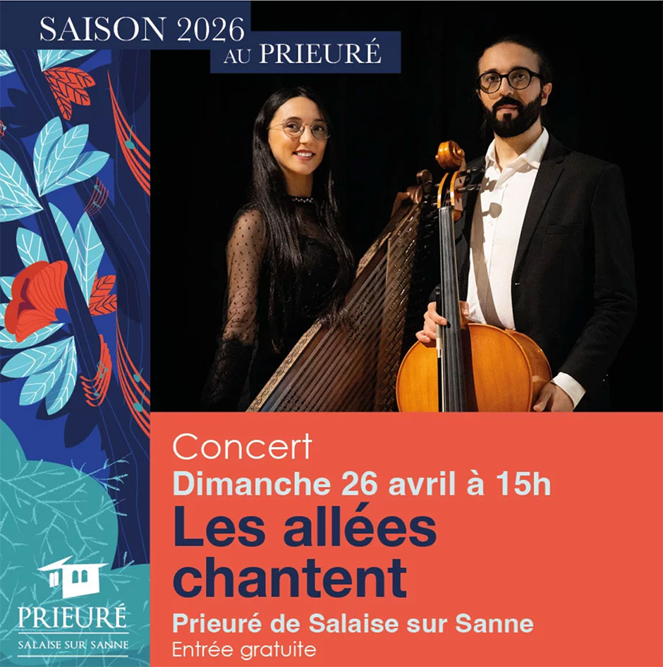 Dimanche 26 avril à 15h – Prieuré – Salaise-sur-Sanne – gratuit – info : 04 74 29 00 80 ou www.mairie-salaise-sur-sanne.fr ou www.les-allees-chantent.fr