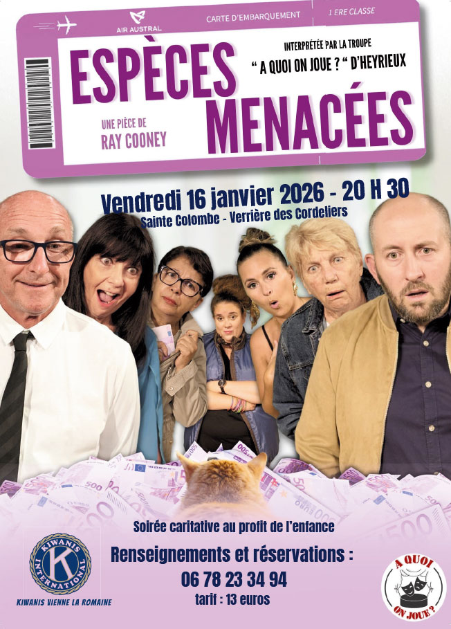 Comédie de Ray Cooney avec la troupe de théatre « A Quoi on joue ? » (Heyrieux) – org. Kiwanis Vienne La Romaine au profit de l’enfance