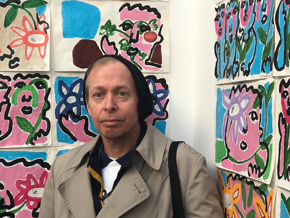 Misterdavid expose un fragment de sa série infinie, qui déploie un univers pictural singulier. Des figures humaines et organiques émergent de pages de dictionnaires anciennes, supports chargés de savoirs et de définitions. Les figures humaines fonctionnent comme des archétypes de l’humanité, tandis que les motifs végétaux renvoient à la totalité du vivant naturel. Le support pictural, posé comme une globalité hypothétique, fait référence à l’ensemble des connaissances que l’humanité construit et accumule sur le monde. En ce sens, la série, par son caractère ouvert et fondamentalement inachevé, constitue une modélisation symbolique du monde en perpétuelle élaboration.