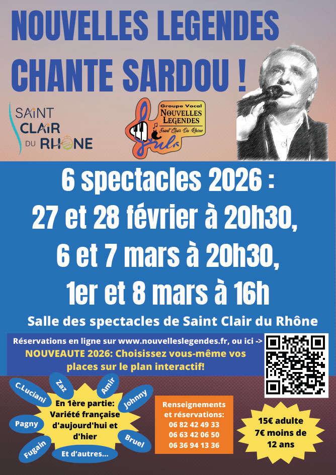 Les traditionnelles « Soirées Chansons » de Nouvelles Légendes : 6 spectacles consacrés à la variété française d’aujourd’hui et d’hier (Johnny, Fugain, Pagny, C. Luciani, Zaz, Amir, Bruel, etc.) avec une 2ème partie dédiée à Michel Sardou.