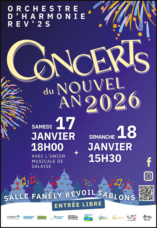 Samedi 17 janvier à 18h (avec l’Union Musicale de Salaise) + dimanche 18 janvier à 15h30 – salle Fanély Revoil – Sablons – entrée libre – buvette