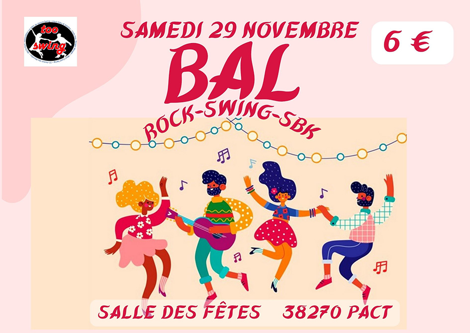 Samedi 29 novembre – salle des fêtes – Pact – 06 78 58 30 22 – tooswingdanse@gamil.com ou helloasso